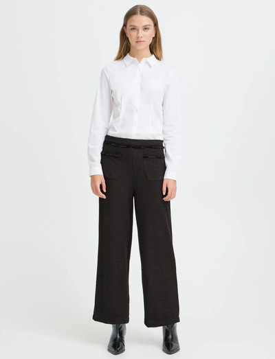 Disse bukser med lige ben har en behagelig pasform og et strejf af tekstur. Designet har en subtil frynsedetalje i taljen, hvilket tilføjer et unikt visuelt element til den klassiske silhuet.