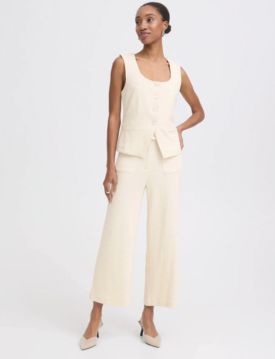 Disse culottes har en afslappet pasform, en beskåret længde og et rent design. Den brede ben silhuet tilføjer et moderne touch, hvilket gør dem til en alsidig tilføjelse til enhver garderobe.