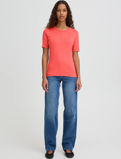 Denne top er fremstillet med en klassisk rund hals og korte ærmer, hvilket giver en tidløs silhuet. Det simple design gør den alsidig og nem at kombinere med jeans, nederdele eller som et lag under jakker.