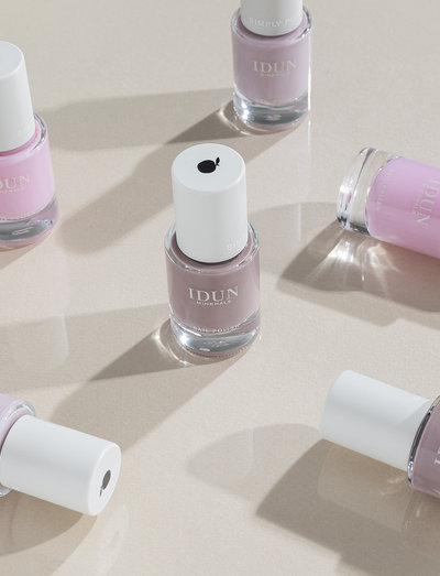 Apply a thin coat of Base Coat Kristall and let dry. Follow by applying an initial layer of IDUN Minerals Nail Polish and apply a second coat for a more in-depth, vivid colour. Finish by applying Fast Dry Top Coat Brilliant or Top Coat Diamant for a lasting hold.
