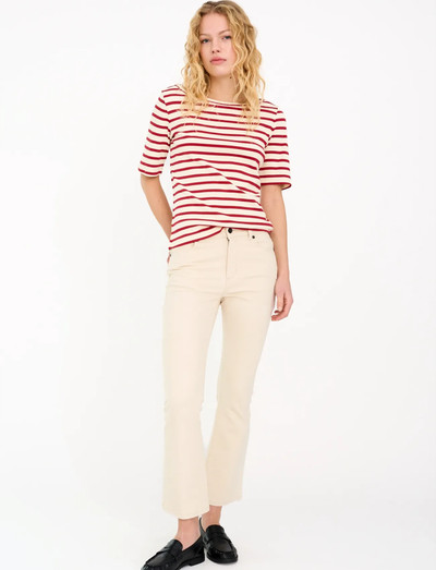 Bootcut fitDisse jeans er et blødt nik til retrostilen med en moderne pasform med kick flare. De sidder midt i taljen, smyger sig om hofterne og har et let flare ved anklen – en silhuet, der løfter og forlænger uden at anstrenge sig for meget. Den rene vask gør dem ideelle til et tonalt look eller et skarpt kontrastlook.