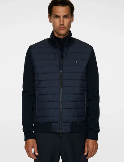 Denne jakke kombinerer en blød strik med vatterede paneler og giver både komfort og varme. Den har en strikket krop i merinoblanding, genanvendte Primaloft®-vatterede paneler, Milano-strikformning, ribkanter og en signatur Bridge-detalje bag på kraven.