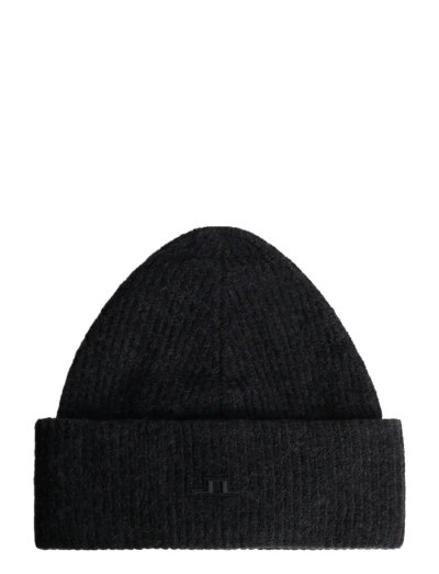 SkiDenne hue er fremstillet af et lodnet garn og føles blød og luksuriøs. Den har en dobbelt foldet kant for ekstra varme og et diskret brand-badge, hvilket gør den til et stilfuldt og behageligt valg til de køligere dage.