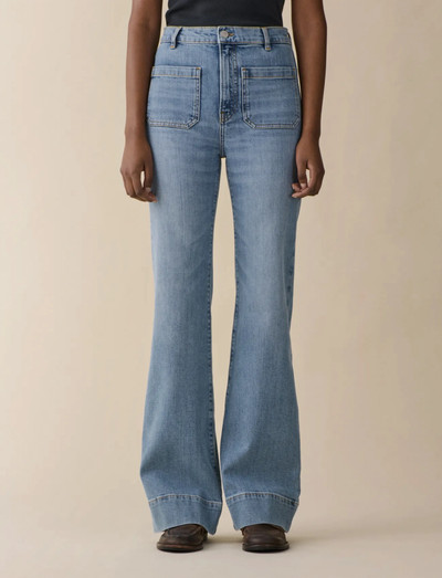 Flare fitMed et nik til vintage-sailor-stil har disse jeans påsyede lommer og en flatterende høj talje. Silhuetten med brede ben flyder ud i en udvidet kant. De er fremstillet i falmet blå økologisk denim med en behagelig stretch, og de er afsluttet med klassiske tobakssyninger og en lynlåsgylp.
