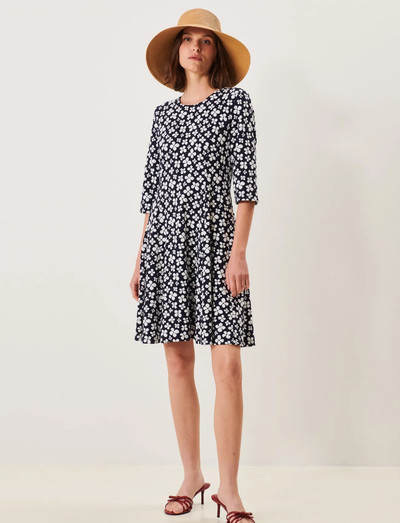 Denne jerseykjole har et legende blomsterprint og er både blød og behagelig at have på. Den har 3/4-ærmer, en rund halsudskæring og et let udskåret skørt, der skaber en flatterende silhuet. Det strækbare stof gør den perfekt til hverdagsbrug, uanset om du klæder den op med sandaler eller holder den afslappet med sneakers.