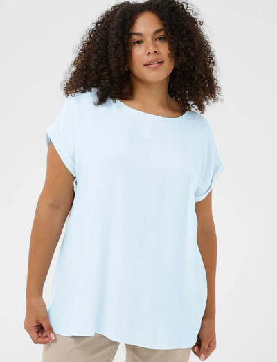 Denne top har korte ærmer med en stilfuld manchet, og den giver en afslappet pasform til hverdagsbrug. Det enkle design gør den til en alsidig tilføjelse til enhver garderobe.