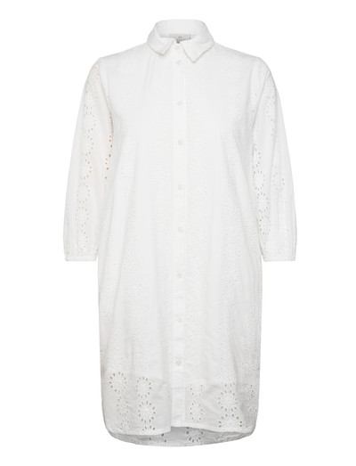 Delikate broderie anglaise-detaljer løfter denne luftige skjortekjole. Designet har en knaplukning foran og trekvartærmer, hvilket giver en afslappet, men raffineret silhuet.