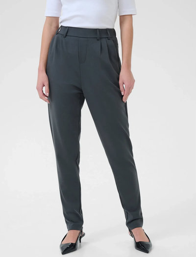 KAjenny bukserne er et komfortabelt og stilfuldt valg til hverdagsbrug. De har en mellemhøj talje med en dobbelt elastisk linning og folder foran. Bukserne har en regular pasform med koniske ben, og de har sidelommer og flap-lommer bagpå.