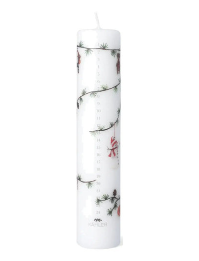 Træd ind i julens magiske og fredfyldte univers med Kählers Hammershøi Christmas. Her er der roligt, trygt og nærværende med nostalgiske og klassiske julemotiver malet i akvarel af kunstner Rikke Jacobsen og overført til Hammershøi-stellet designet af Hans-Christian Bauer. Også Hammershøi Christmas-kalenderlyset 2025 er formet af tradition og fyldt med hyggelige motiver, der sørger for, at du på smukkeste vis kan tælle ned til juleaften. Kalenderlyset har en diameter på 5 cm og måler 25 cm i højden. Og i tråd med de foregående år symboliserer motiverne alt det, som Hammershøi Christmas står for. 2025-udgaven af det klassiske kalenderlys er selvfølgelig som sædvanlig udstyret med tal fra 1 til 24 og er derudover prydet af en lille julebuk med blåt silkebånd, en lille sød bamse med rødt halstørklæde, en glad snemand med rød hue og halstørklæde, en lille sovende julemus med rød nissehue, en skive appelsin hængende i en grøn snor, lidt lækkert slik og et par flettede julehjerter. Alt sammen hængt som små motiver på den velkendte cedergren med lærkekogler. Kalenderlyset er fremstillet i fuldraffineret specialvoks, der brænder smukt helt indtil den 24. december.