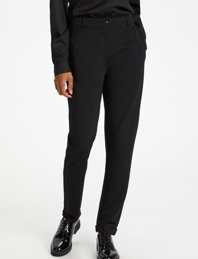 Disse slim-fit bukser er et stilfuldt og komfortabelt valg til enhver lejlighed. De er lavet af et blødt og strækbart stof, der bevæger sig med dig, og de har en smigrende slim fit, der får dig til at se og føle dig bedst. Bukserne har en høj talje og et lige ben, og de er perfekte til at klæde sig op eller ned.
