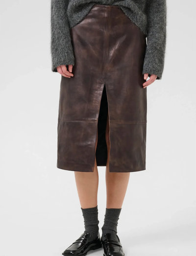 Denne læder nederdel er skåret i en klassisk pencil silhuet og giver et elegant udtryk. Designet med en normal talje og en mid-længde, hvilket gør den til en alsidig beklædningsgenstand til at skabe et poleret look.