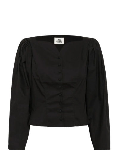 Elegant design møder moderne skrædderkunst i denne langærmede skjorte, der har knaplukning foran og let puffede ærmer. Den raffinerede silhuet gør den til en alsidig tilføjelse til enhver garderobe, let at klæde op eller ned til forskellige lejligheder.