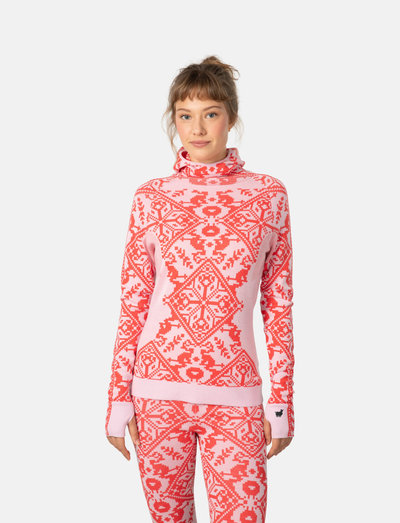 4-vejs stretchDenne baselayer kombinerer nordisk inspiration med varmt uld og er designet til at bevæge sig med dig. 4-vejs stretchmaterialet giver en behagelig pasform, mens strategisk mesh giver ventilation. Tommelfingerhullerne giver ekstra komfort, og den faste hætte giver ekstra isolering under en hjelm eller hat, så du kan holde varmen på kolde dage.