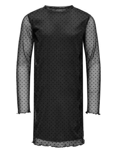 Mesh-detaljer tilføjer et edgy touch til denne langærmede kjole. Denne kjole med normal pasform er perfekt til fester eller hverdagsbrug og kan kombineres med leggings og sneakers for et komfortabelt og stilfuldt look. De flæsekanter tilføjer et legende touch.