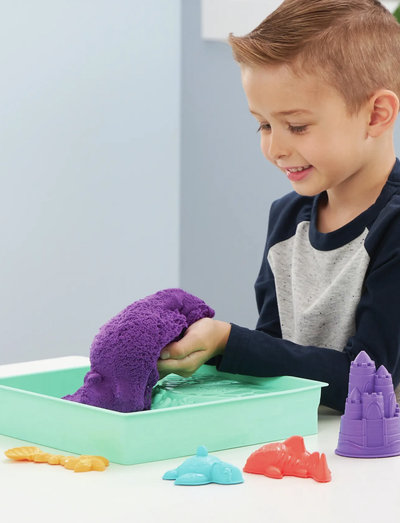 Skab dine egne sandkasseeventyr med Kinetic Sand Sandkasse-sæt - Lilla. Kinetic Sand er det originale magiske, formbare og fascinerende sansesand. Det flyder mellem dine fingre og aldrig tørrer ud, så du kan lege igen og igen. Med sandkassesættet kan du nyde sandkasseleg hele året rundt. Den unikke Kinetic Sand-formel gør det nemt at forme, mase og skabe alt, hvad du kan forestille dig. Form slotte, hajer og skildpadder med 454 g lilla Kinetic Sand og brug det medfølgende skovlredskab til at grave, øse, lade det flyde og forme. Dette Kinetic Sand-sæt inkluderer endda en sandkassebakke i to niveauer til indhegnet leg, perfekt indendørs. Klem det, klip det, øs det, form det - de kreative muligheder er uendelige med Sandkasse-sættet. Skab forskellige kreationer igen og igen, og lad Kinetic Sand flyde mellem dine fingre - det er så tilfredsstillende, at du ikke kan lægge det fra dig. Kinetic Sand er lavet af naturligt sand. Dette Kinetic Sand-sæt er ikke kun et godt alternativ til modellervoks, men det er også en fantastisk til kreative og sanselige projekter og som Montessori-legetøj. Perfekt, sejt legetøj til piger og drenge, der motiverer selvstændighed og fantasi! Vil du have mere sjov med Kinetic Sand, kan du genopfylde dit Kinetic Sand legesæt-med Kinetic Sand-poser med farvet sand (sælges separat).