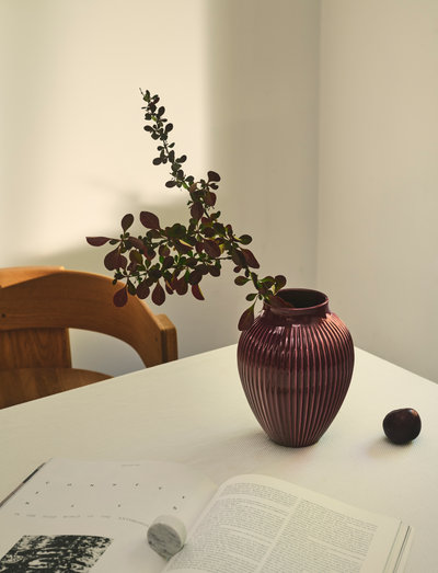 Gennem tiden har Knabstrup Keramik produceret et utal af smukke vaser i forskellige formgivninger. Denne vase er vi særligt stolte af. Den blev oprindeligt formgivet i slutningen af 1940’erne og med sin elegante og klassiske form er vasen et tidløst stykke keramik, der holder stilen langt ind i fremtiden. Knabstrup vasen er designet, så den ikke bare præsenterer sig selv, men også sæsonens blomsterbuketter og grene på smukkeste vis. Nu lanceres vasen med riller, hvilket giver den klassiske form helt nyt liv og giver et moderne og interessant udtryk, som passer perfekt ind i den nordiske boligindretning.