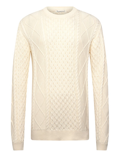 Experience comfort and style with this premium crewneck sweater, crafted from organic cotton. The intricate cable-knit pattern adds a touch of elegance, while the soft, breathable fabric ensures all-day wearability. Designed for a relaxed fit, this sweater is perfect for layering or wearing on its own. Ribbed cuffs, hem, and neckline provide a refined finish. Elevate your everyday wardrobe with this timeless and versatile knitwear piece, ideal for both casual and smart occasions.