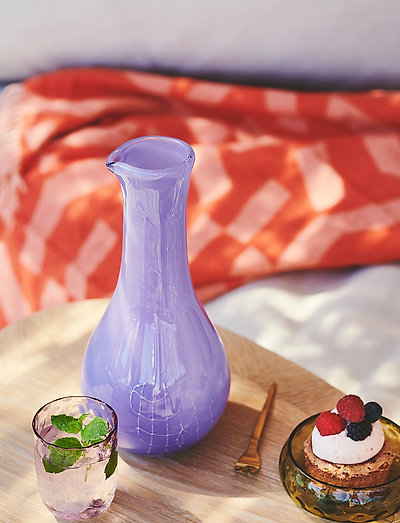 Da Flow Carafe er lavet af tre lag glas, vil farveintensiteten, mønsteret og det samlede udtryk af hver eneste kande være unik.
