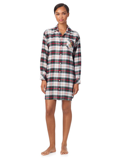 Denne sleepshirt er fremstillet i et blødt, vævet stof og har en afslappet pasform, der giver ultimativ komfort. Designet med lange ærmer har en knaplukning foran og en brystlomme, hvilket gør den til et stilfuldt og praktisk valg til nattøj.
