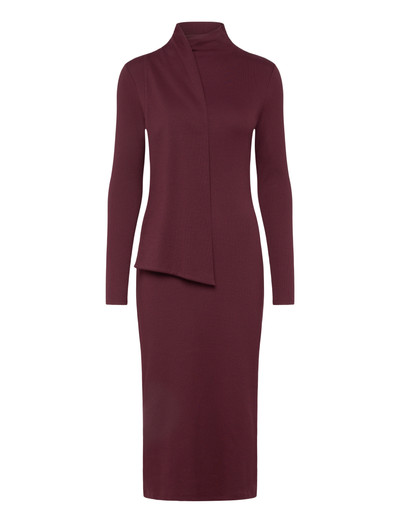 Denne ribstrikkede kjole er et sofistikeret valg til enhver lejlighed og har en unik, tørklæde-lignende kant, der draperer elegant. Det langærmede design og knælange snit giver en flatterende silhuet, hvilket gør den til en alsidig tilføjelse til din garderobe.