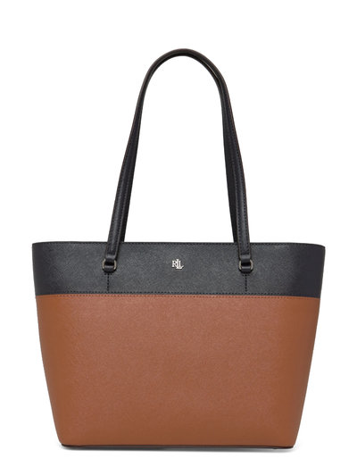 Crosshatch leather brings subtle texture and sophisticated style to the medium Karly tote, which features a spacious silhouette perfect for storing your essentials. Excellent for travel, the office, or running errands, this iteration is updated for the season with a sporty striped design.Two top handles, each with an 8.75" drop length.Top zip closure. “LRL” metal logo at the front. “Lauren Ralph Lauren” foil-printed logo at the exterior pocket. “Lauren Ralph Lauren est. 1967”–engraved metal plaque at the interior.Exterior slip pocket. One zip pocket and one slip pocket at the interior.