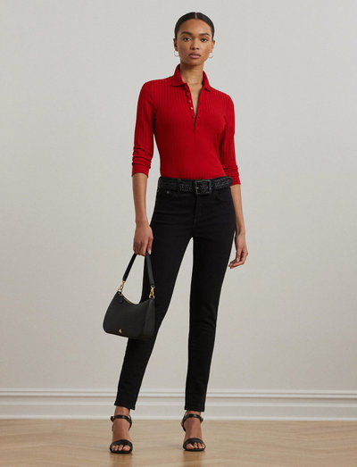 This version of Lauren Ralph Lauren’s quintessential Polo shirt features three-quarter-length sleeves and a rib-knit construction for rich dimension. “LRL”-engraved imitation shell buttons add a signature finish.Slim fit. Intended to hit at the hip.Size medium has a 24" body length and an 18.5" sleeve length. Body length is taken from the high point of the shoulder. Sleeve length changes 0.5" between sizes.Ribbed Polo collar. Six-button placket. Buttons custom-developed with an "LRL" logo.