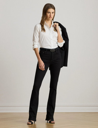 Denne skjorte er fremstillet af strækbomuld og giver både komfort og en flatterende silhuet. Det langærmede design er afsluttet med en klassisk knaplukning foran og en elegant monogramdetalje.