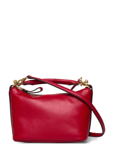 Denne kompakte taske er fremstillet af smidigt nappalæder og har en struktureret silhuet. Den er udstyret med et tophåndtag og en aftagelig skulderrem, der giver alsidige bæremuligheder. Guldfarvet hardware tilføjer et strejf af elegance.