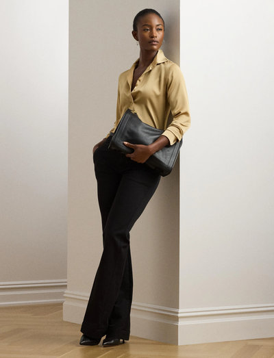 Embellished with signature engraved buttons, this timeless shirt is crafted with glossy satin charmeuse for a luxurious Lauren look.Straight fit. Intended to hit at the hip.Size medium has a 27.5" body length and a 32.5" sleeve length. Body length and sleeve length are taken from the center back of the neck. Sleeve length changes 0.75" between sizes.Point collar. Buttoned placket. "Lauren Ralph Lauren"–engraved pearlized buttons.