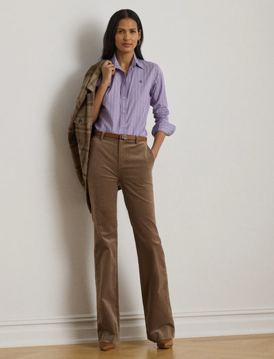 Sprødt bomuldspoplin og garnfarvede striber definerer denne strømlinede skjorte, hvilket skaber et skræddersyet og poleret look. Den har en spids krave, en knaplukning og specialudviklede knapper med et logo. Et broderet logo på brystet tilføjer et signaturpræg.