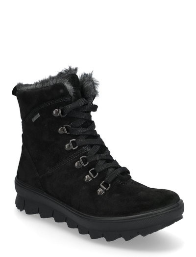 VandtætDisse snørestøvler har et sporty trekking-look, der er meget trendy. Med justerbar snøring, der tilpasser sig enhver fod, giver denne ankelstøvle god støtte og en perfekt pasform. Takket være den indvendige foring giver den et perfekt klima for foden samt varme og tørre fødder. Den markante, profilerede sål af særligt let PU fuldender det fortryllende look.