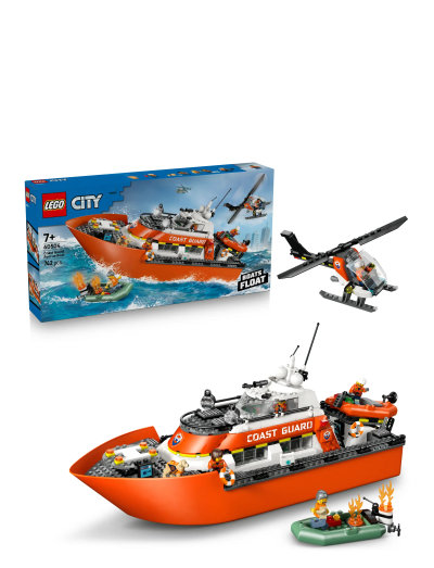Børn fra 7 år kan tage på haveventyr med LEGO® City byggesættet Kystvagtens redningsbåd og helikopter (60504). Båden kan flyde og har masser af funktioner og detaljer samt aftagelige dæk og giver nem adgang til leg på skibets kontrolbro, i soverummene og i køkkenet. Børn kan søsætte en redningsjolle fra rampen eller flyve fra bådens helikopterlandingsplads i en cool helikopter. Legetøjssættet omfatter endnu en jolle, LEGO flammer, 5 minifigurer og en hundefigur til sjov leg og historiefortælling. Alle 3 både kan flyde.
