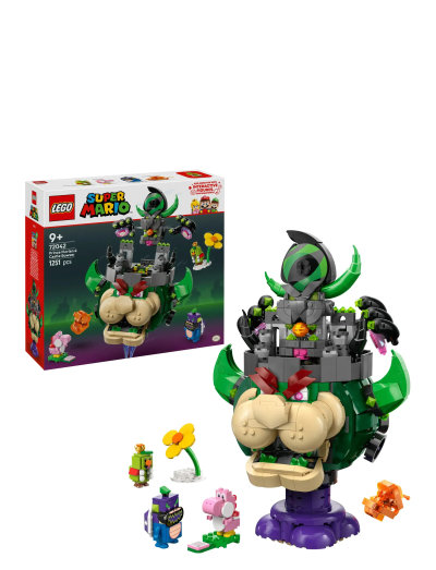Lad børn genskabe kampe fra Super Mario Bros™ Wonder, og befri Prince Florian fra Castle Bowser med dette sjove LEGO® Super Mario™ byggelegetøj (72042). Det detaljerede klodsbyggede Castle Bowser-legesæt er en fantastisk gave til drenge, piger og gamere fra 9 år og indeholder legetøjsfigurer af Pink Yoshi, en Fiery Note Piranha, Prince Florian og Wonder Bowser Jr. til rolleleg og udstilling. Løft Castle Bowser ned fra foden og sæt den ned for at se det detaljerede interiør, bl.a. en celle til Prince Florian, og løft hele slottet fra foden for at "flyve" rundt, eller løft kun den øverste del af for at "flyve" og affyre en ildkugle fra hans mund.