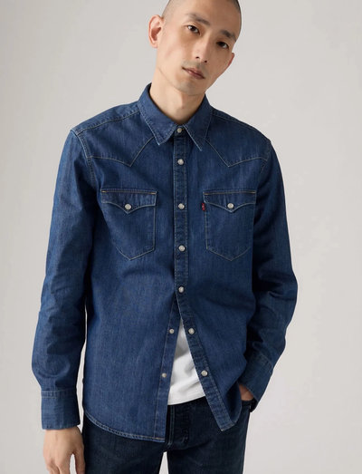 Denne klassiske denimskjorte er en garderobe-hæfteklammer. Den har en klassisk vestlig stil med en spids krave, knap-ned-front og lange ærmer. Skjorten har to brystlommer med knaplukninger og en enkelt lap-lomme på venstre bryst. Den er lavet af et behageligt og holdbart denimstof.
