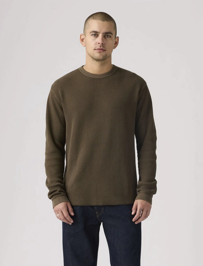 Denne langærmede T-shirt er defineret af en vaffelstrikket konstruktion, der giver både tekstur og varme. En klassisk rund hals gør den til et alsidigt lag eller en behagelig mulighed for sig selv.