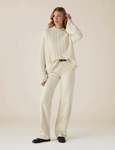 Denne sweater er fremstillet med et klassisk kabelstrik, der giver både varme og tidløs stil. Den bløde tekstur og afslappede pasform gør den ideel til lag-på-lag-beklædning på køligere dage. Den har en behagelig rund hals og lange ærmer.