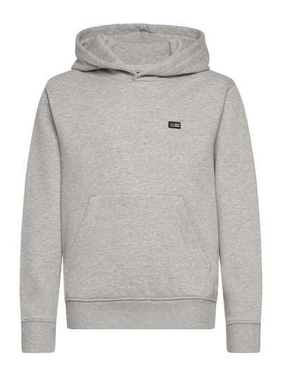 Denne hættetrøje er fremstillet af blød, økologisk bomuld og har en behagelig og afslappet pasform. Den har en klassisk kængurulomme og en diskret logo-detalje, hvilket gør den til en alsidig tilføjelse til ethvert barns garderobe.