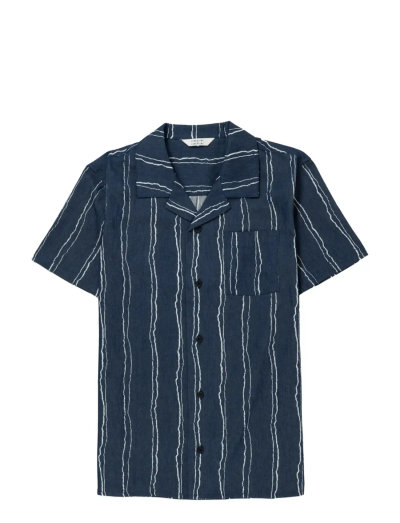 Denne kortærmede skjorte har en camp-krave og vertikale striber, hvilket giver en afslappet og luftig stil. Designet fuldendes med en brystlomme og knaplukning.