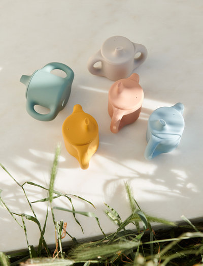 SILICONE SIPPY CUP FOR BABIES • Chunky look with a soft feel • Like Kylie cup, just with 2 thinner handles • 3 small holes in the lid for the liquid. • Durable and unbreakable material • Dishwasher safe • Noise-free when dropped