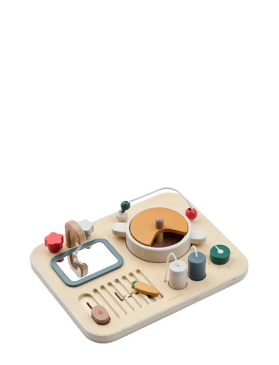 1,5+ ÅrThe fun MAGNUS wooden busy board invites budding chefs to stir, shake, and sizzle their way through sensory play. Made from durable beech wood and MDF, this sensory activity board sparks curiosity with a spinning pot lid, rattling salt and pepper shakers, and a playful mirror sink, encouraging the development of fine motor skills.