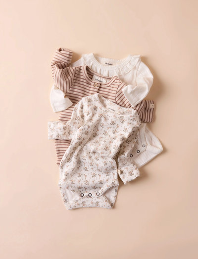Denne langærmede body har et rib-design og en fin blondekant. Den har en klassisk rund halsudskæring og en trykknaplukning i bunden for nem påklædning.