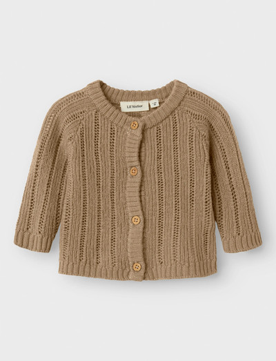 Denne cardigan er fremstillet af blød uld og sikrer, at dit barn er komfortabelt hele året rundt. Uldens naturlige termiske egenskaber gør den ideel til alle årstider, da den holder på varmen i koldt vejr og absorberer sved, når det er varmt. Denne strik har lange ærmer med ribkanter, en klassisk O-hals og knaplukning.
