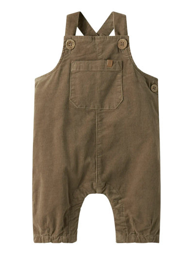 Disse fløjlsbukser har en fløjlsagtig ribbet tekstur, der giver en blød og behagelig fornemmelse. De er designet med en løs pasform og har en forlomme samt knap- og løkkelukning. Disse overalls er et stilfuldt og praktisk valg til din lille.