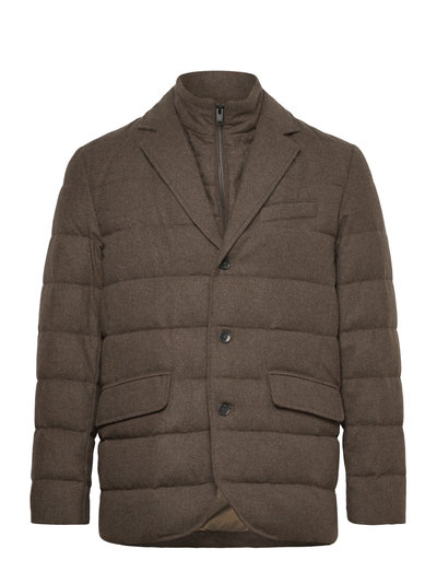 Denne jakke kombinerer det skarpe look fra en blazer med varmen fra en dunjakke, og giver et unikt mix af stil og komfort. Det quiltede design sikrer en jævn fordeling af isoleringen, mens det skræddersyede snit giver en sofistikeret silhuet.