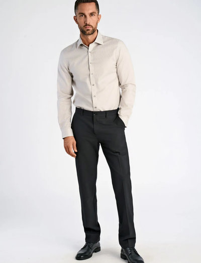 Denne langærmede skjorte er fremstillet med en subtil stribe, der giver et raffineret look. Knappernes design og den skræddersyede pasform gør den velegnet til både professionelle og smarte, afslappede omgivelser. Det glatte stof sikrer komfort hele dagen.