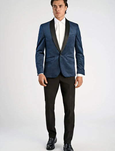 Denne blazer er fremstillet i blød velour og har en markant, præget tekstur. Designet omfatter en klassisk enkeltknapslukning og raffinerede revers, hvilket gør den til et alsidigt valg til formelle og semi-formelle lejligheder.