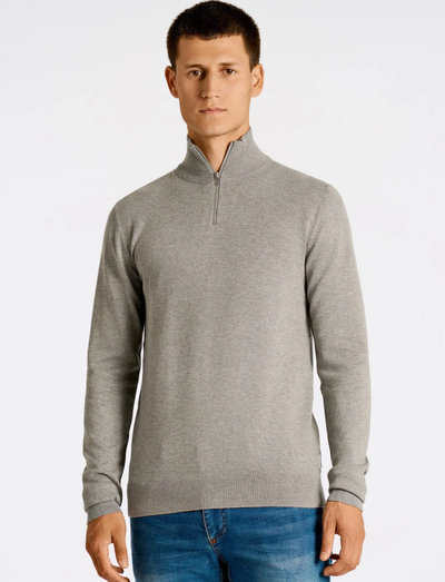 Denne halv-zip pullover er et stilfuldt og komfortabelt valg til enhver lejlighed. Den har et klassisk design med en halv-zip lukning og en høj hals. Den mélange strikkede stof er blødt og åndbart, hvilket gør den perfekt til lagdeling.