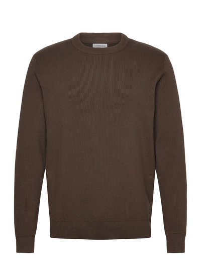 Denne strik har en klassisk ribstruktur, der giver både visuel interesse og en behagelig fornemmelse. Det enkle design med rund hals gør den alsidig og nem at bruge i lag, enten med skjorte under eller alene for et afslappet, men stilfuldt look.