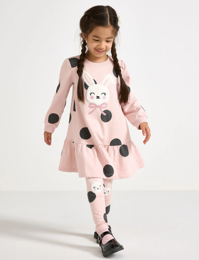 Denne bløde sweatshirtkjole har en børstet inderside, der giver en behagelig komfort. Den er udsmykket med en charmerende, fluffy applikation på forsiden og et legende all-over print.