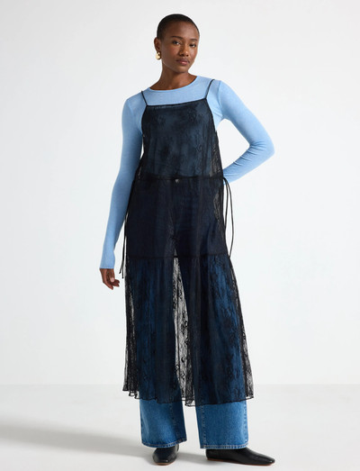 Denne midikjole er fremstillet af delikat blonde og mesh og har slanke skulderstropper, der giver en raffineret silhuet. Designet giver et yndefuldt look, perfekt til særlige lejligheder eller et elegant hverdagslook.
